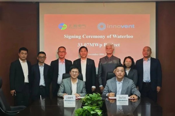 上海電氣集團股份有限公司首席運營官、上海電氣風電集團股份有限公司黨委書記、董事長喬銀平,上海電氣新能源發展有限公司黨委書記、總經理張洪斌以及InnoVent首席執行官共同見證簽約。恒羲光伏常務副總經理胡建波與InnoVent中國公司總經理黎明分別代表雙方簽署協議。