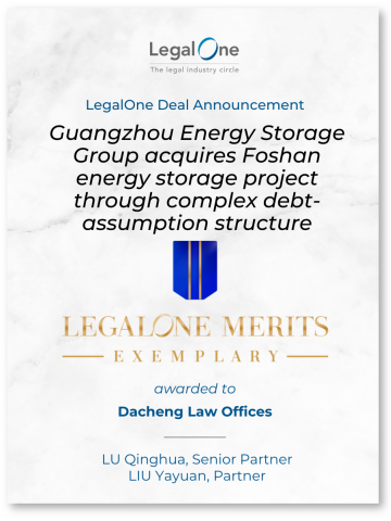 11月26日,國際著名商事交易及爭議解決項目評級機構LegalOne公布了最新項目評級結果(LegalOne Merits),北京大成(廣州)律師事務所(以下稱大成廣州)高級合伙人盧清華,合伙人劉亞元律師經辦的廣州儲能集團以承債式收購方式取得佛山市儲能項目榮獲LegalOne Merits Exemplary(典范)評級。該成績不僅是對兩位律師卓越專業能力的高度認可,更彰顯了大成廣州在房建與能源法律服務領域的綜合實力與領先地位。